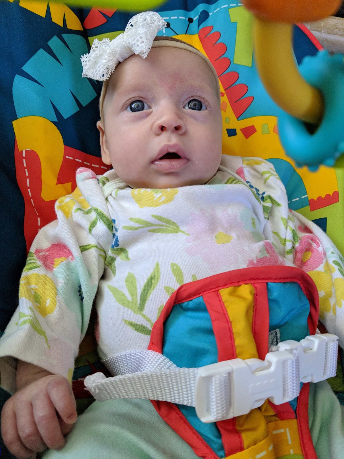 Cora was struggling with reflux for a while, but she started a medication that has been helping. She's growing and doing great otherwise. Just keeping us up at night! Rose is doing well too. I think she's loving all the Mommy and Daddy time and she loved the warm days outside recently.